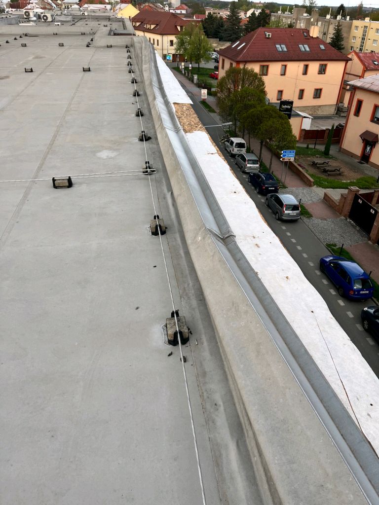 při silném větru během Velikonoc došlo k poškození střešní folie přes atiku směrem do ulice Palackého - viz foto.